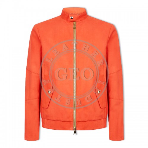 • Orange Color High Quality Winter Fashion Leather Jackets For Gents